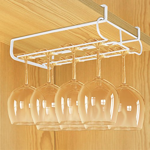 - [Space Saving]: Install this stemware rack underneath the cabinets in your kitchen, bar or anywhere you want. This will help you save a lot of space and give you a more practical use of the cabinet area.