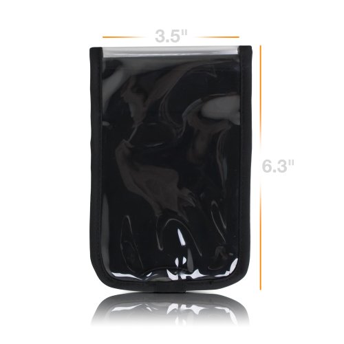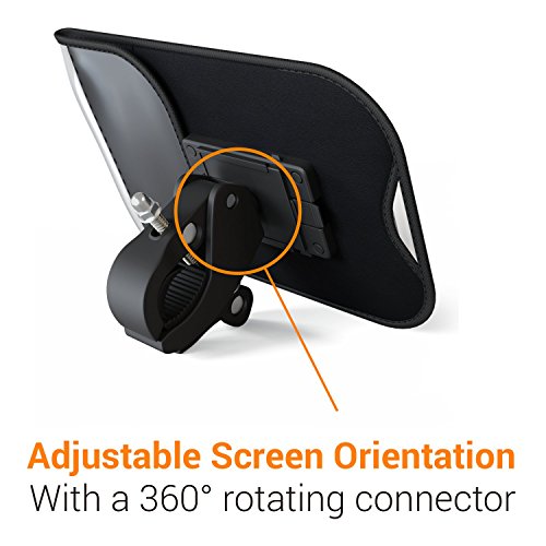 The water-resistant neoprene pouch attaches to a 360-degree rotating connector which snaps into position once the ideal screen orientation is achieved.