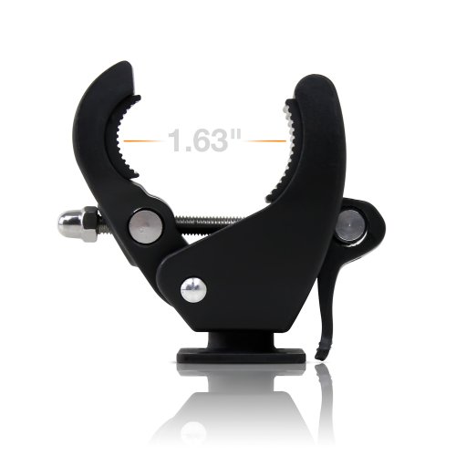 The pouch snaps onto the mount for a secure hold, while pressing on a lever releases the pouch. An included rubber strip and rubber inside the clamp protect the bicycle from scratches while providing grip so the mount will stay in place.