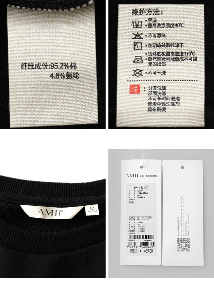 | 洗涤标准: | 悬挂晾干不可干洗不可漂白不可浸泡110℃以下垫布熨烫40℃以下手洗 |