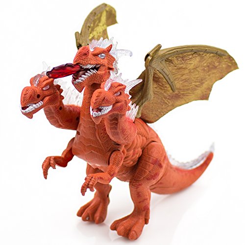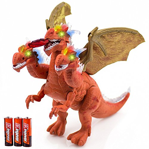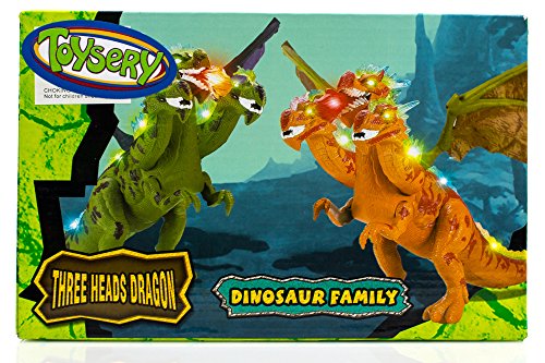 ► WALKING THREE HEADS TOY : Toysery Walking Three Heads that walks while he roars and shakes his head, light up eyes and flash as he moves around. Educational, help your kid's develop brain