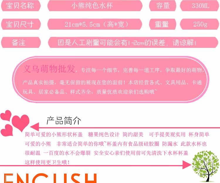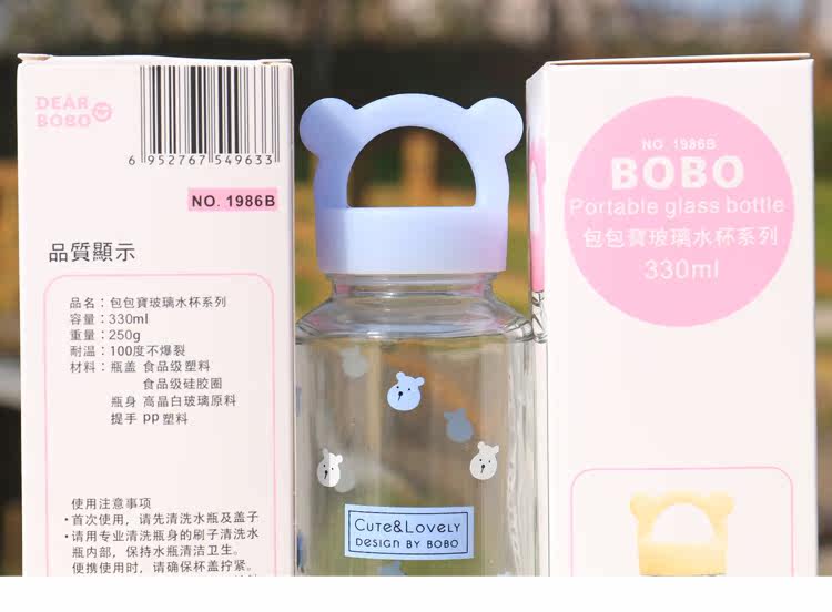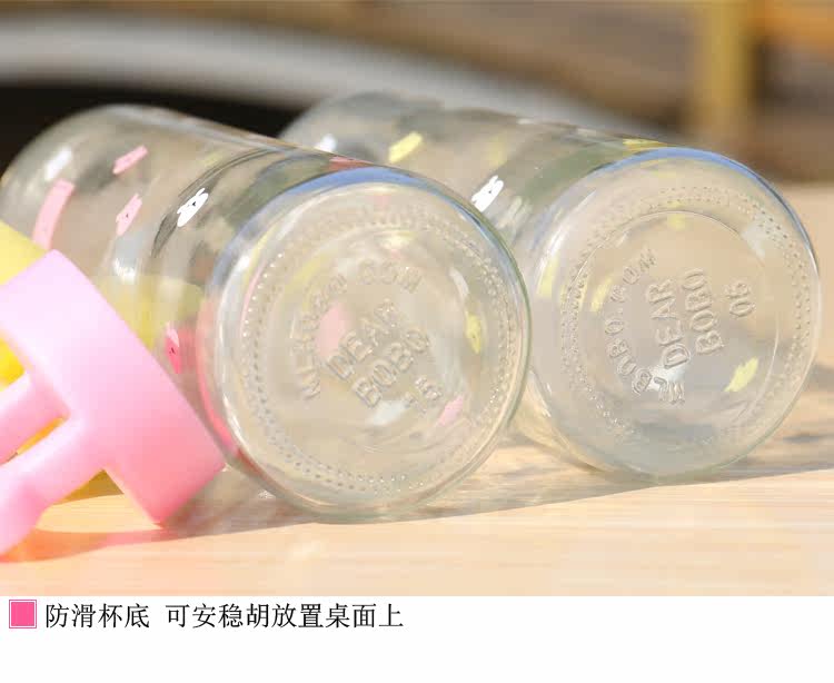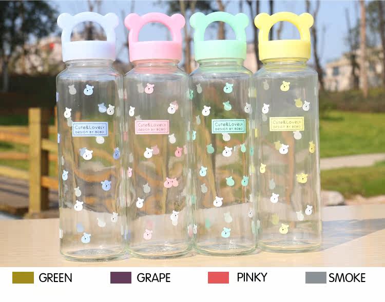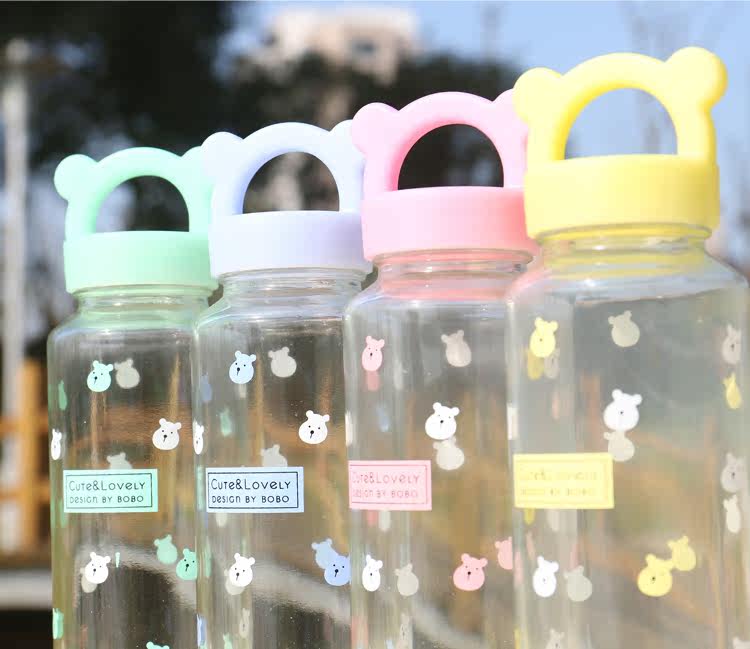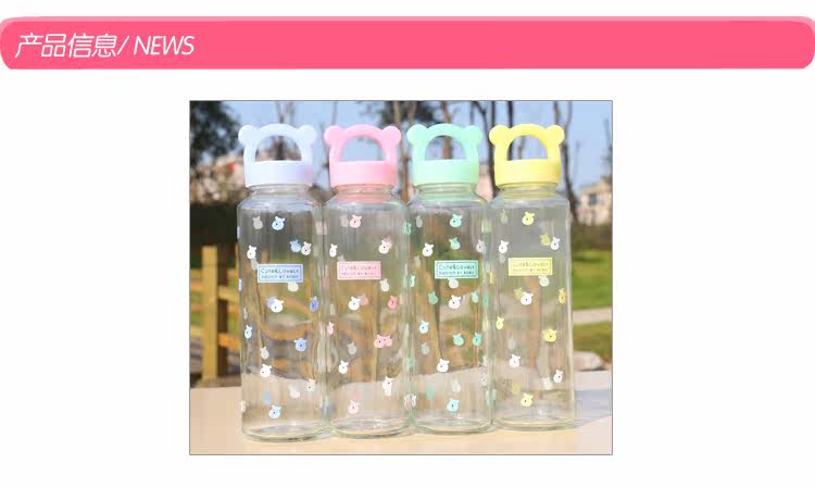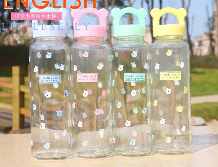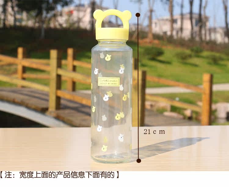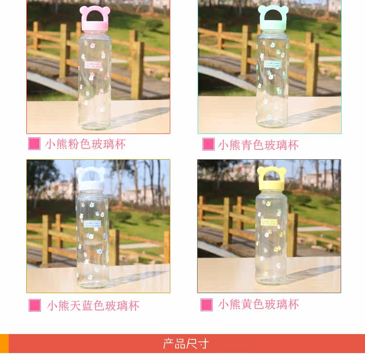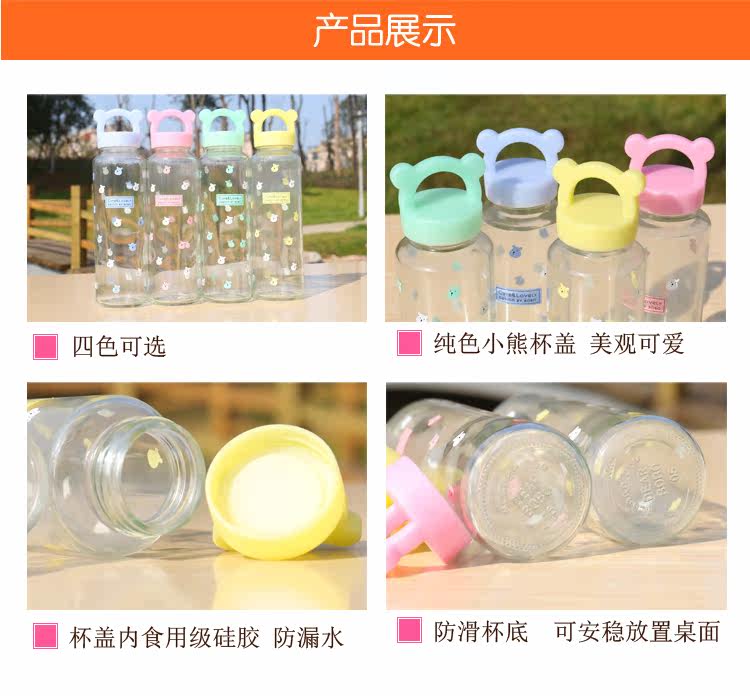 卡通小熊玻璃杯办公泡茶便携水杯创意学生透明杯子耐热带盖随手杯