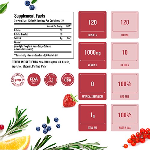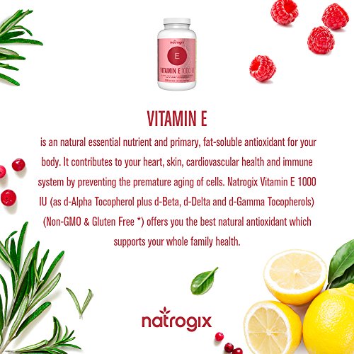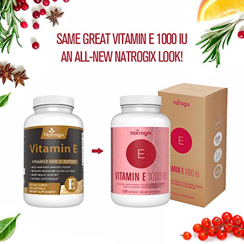 -. Title : (120 Softgels) Natural Vitamin E Capsules 1000 IU by Natrogix - Mixed D-Alpha Tocopherol and Mixed Tocopherols - Antioxidant for Healthy Skin, Eyes and Immune System Booster