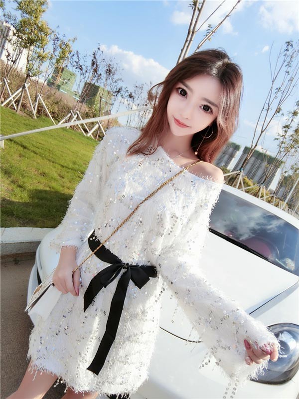 ワンピ全体にタッセルスパンコールが縫い付けたゴージャスなデザインです☆