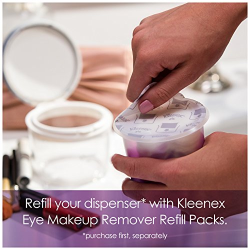 The Kleenex Pre-Moistened Eye Makeup Remover Refill is easy-to-use – just peel and toss the plastic seal and drop into the refillable dispenser. Each budget-friendly refill pack contains 60 eye makeup remover pads. The dispenser is sold separately and includes 60 eye makeup remover pads. Kleenex Eye Makeup Removers have an exclusive micro-fine fabric and oil-free makeup remover to gently lift eye makeup without any greasy residue. Uniquely shaped for precise control around the eyes, the pre-moistened pad removes even waterproof mascara. Each hypoallergenic pad features a pro-vitamin complex that helps to nourish the sensitive skin around the eye. Made for all skin types, use daily to remove makeup. Kleenex moist eye makeup removers are ophthalmologist- and dermatologist-tested and hypoallergenic.