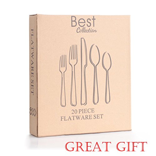 - 20 Pcs in 4 Set: This dinnerware set serves for 4 people, set contains 4pcs Main Spoon, 4pcs Main Fork, 4pcs Dinner Knife, 4pcs Dessert Fork, 4pcs Teaspoon.