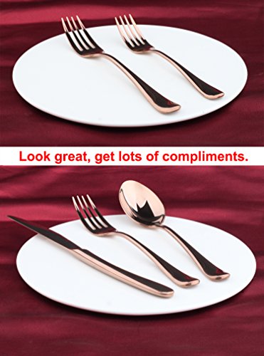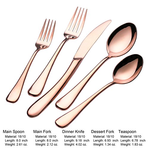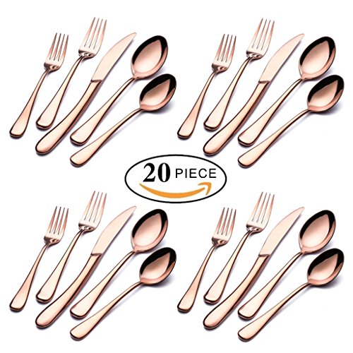 20-Piece Flatware Silverware Set 18/10 Stainless Steel Cutlery Tableware Service for 4 Include Dinner Knife Fork Spoon Dishwasher Safe (Rose Gold)