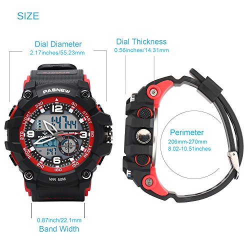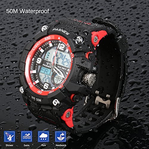 DURABLE & HIGH QUALITY MATERIALS: HOWOD's teens sport watch is manufactured with environmental friendly, high quality materials. It has a stainless steel back and buckle, plus a soft PU strap that ensures comfortable adjustment on a teenager's wrist with 10 regulation holes and perimeter from 5.2 to 8.7 inches. This is a dual time movement watch, 50m water resistant and has a long lasting battery.