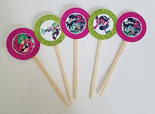 8 Splatoon 2 Pink Green Cupcake Toppers for Birthday Party Favor Goody Treat Cake Dessert Picks Decorations