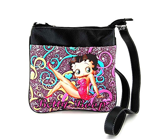 Betty Boop Cross Body Handbag, Black with Floral Pattern