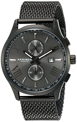 -. Title : Akribos XXIV Men's Swiss Quartz Stainless Steel Dress Watch, Color:Black (Model: AK905BK)