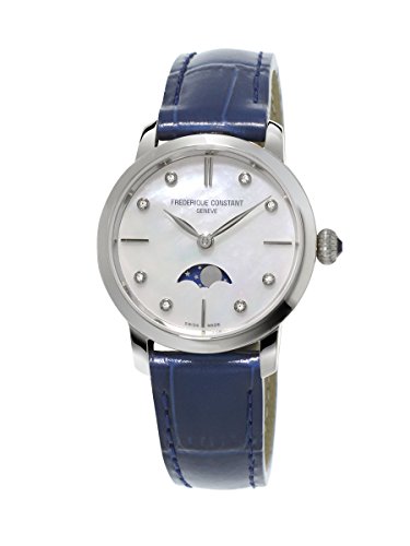 -. Title : Frederique Constant Slimline Moonphase FC-206MPWD1S6 30mm Diamonds Stainless Steel Case Blue Leather Synthetic Sapphire Women's Watch