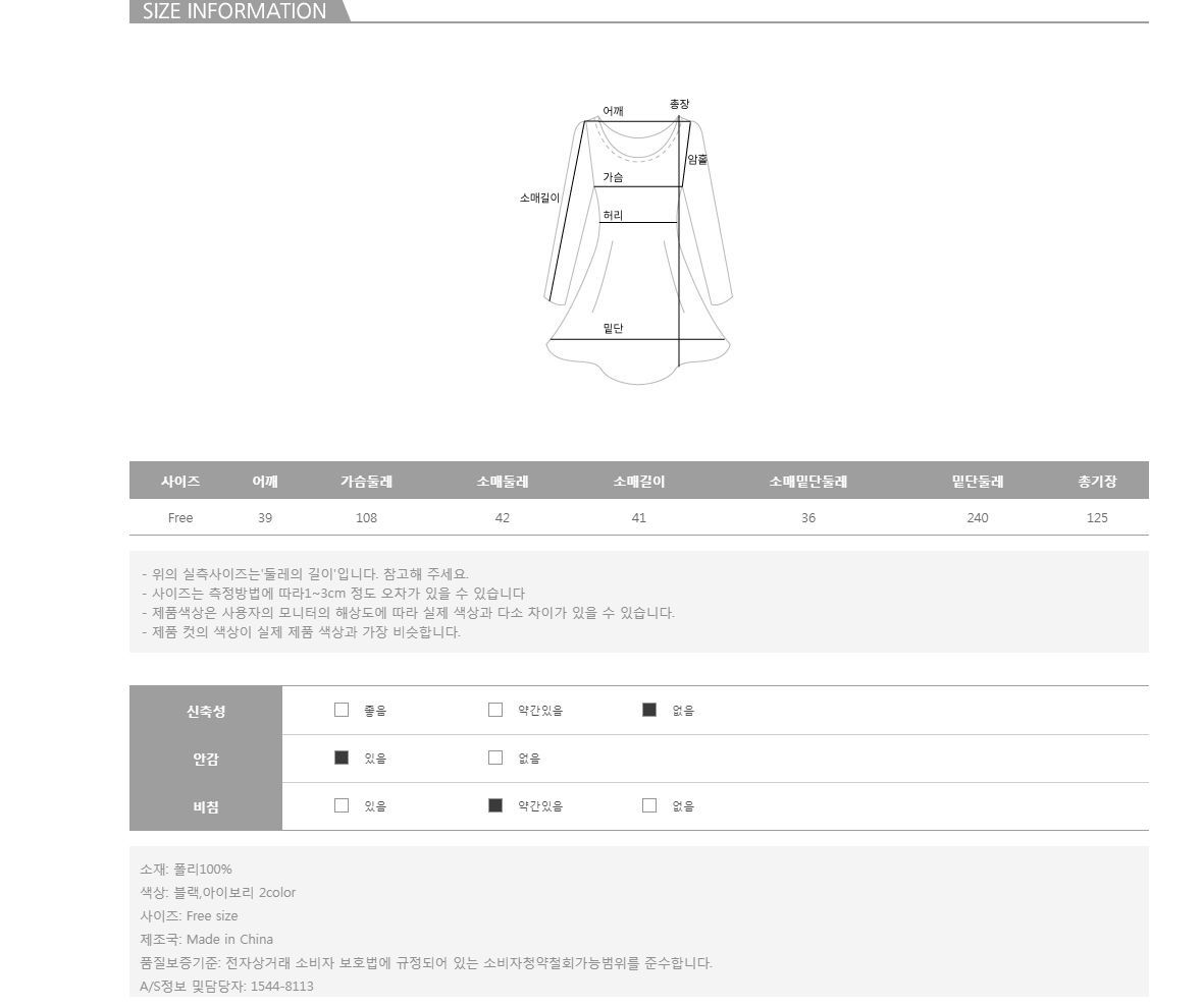 컬러는 블랙,아이보리 2color로 구성되어 있으며, 모델의 착용 컬러는 블랙/아이보리 입니다.