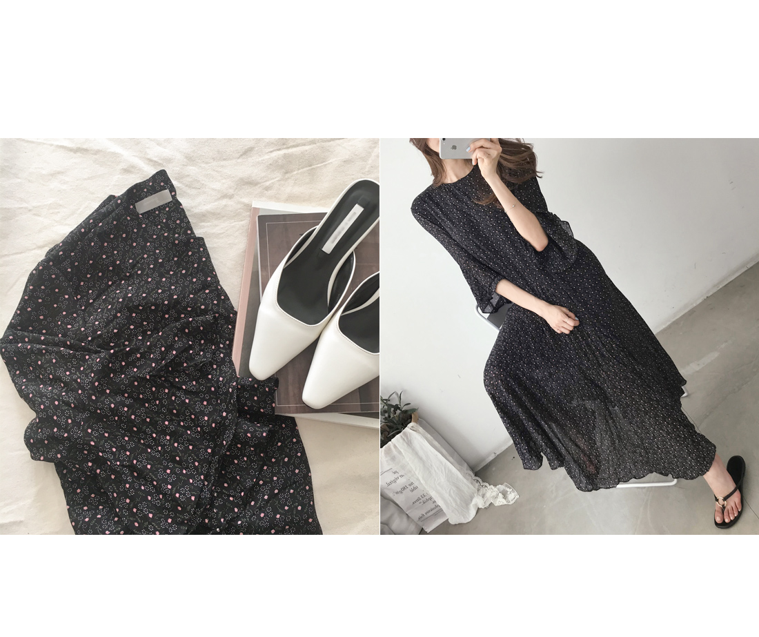 잔잔한 플라워 패턴으로 다가온 봄이 실감나는 원피스 소개할게요 은은하게 가득 메워진 화사함이 생기있는 분위기를 선사해드림은 물론, 움직임에 따라 살랑거리는 실루엣이 더욱 로맨틱한 아이템이랍니다:)