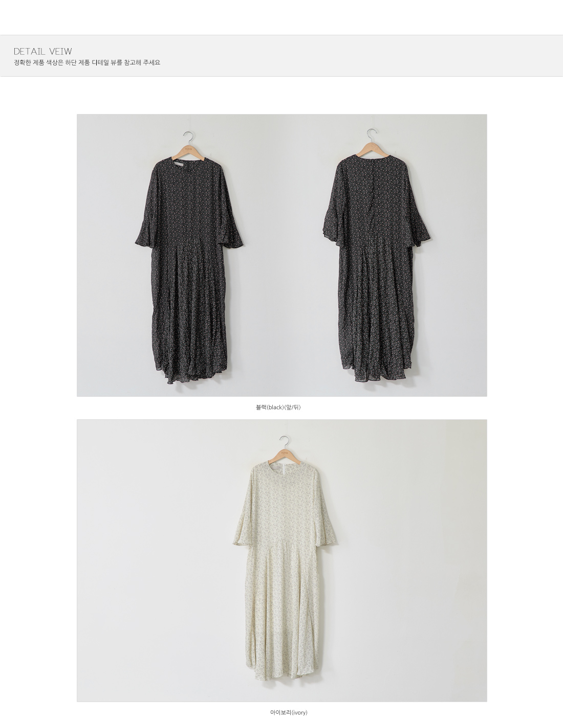 간편하게 스타일 내고 싶은 특별한 날, 가장 이지하게 즐길 수 있는 원피스 아이템으로 코디 고민 no no! 하늘하늘 바디에 부드럽게 감기는 유연한 폴리 페브릭으로 제작되어 입은 듯 안 입은 듯 편안함과 하루종일 기분 좋은 착용감을 전해드릴 뿐만 아니라 자연스러운 플레어 라인을 표현해내기 때문에 로맨틱한 실루엣으로 만나보실 수 있구요-! 거기에 은근히 군살 쏘-옥 가려주는 체형 커버 효과에도 GOOD~ 다른 일반 원피스 보다도 훨씬 은은하게 표현된 플라워 패턴감이 평소에 이런 플라워 원피스가 부담스러우셨던 분들에게도 제격이라는 사실:) 롱한 기장감과 함께 소매 프릴 디테일이 한층 더 로맨틱한 감성을 더해주며 시원하고 퓨어한 느낌이라 봄, 여름, 가을까지 활용도 UP! 여리여리한 분위기가 감돌아 보다 청순한 원피스로 추천드릴게요~