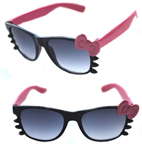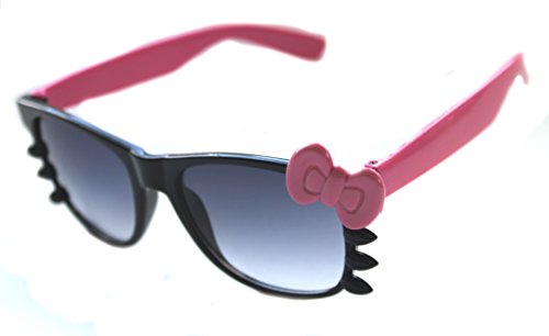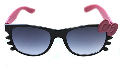 WAYFARER SUNGLASSES HELLO KITTY BLACK FRAME COLOR BOW WITH WHISKERS HORN RIMMED