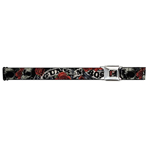 Guns N' Roses Seatbelt Belt - Text Banner Logo w/ Skulls & Roses