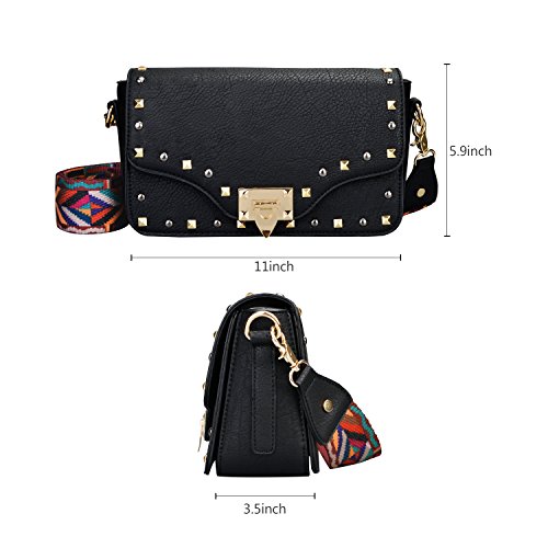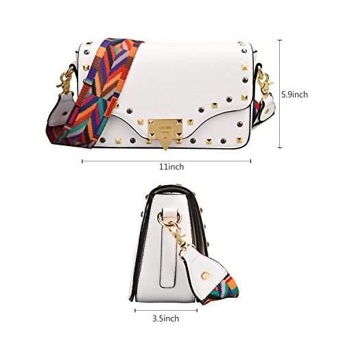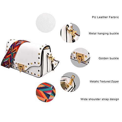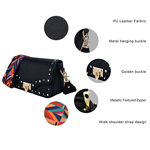-. Feature : Material: Made of durable PU leather with good sense of touch, and compact structure. / Size: 11 inch*5.9 inch*3.5 inch. It is a beautiful bag for any occasion no matter what the season. / The shoulder bag strap with colorful and elegant stripes design can be easily adjusted, the longest is 50 inches and the shortest is 26 inches. / Our handbag contains one large main pocket and another two small side pockets , all can be easily opened. It can hold your phones, wallets and keys and many other belongings in there. / Our guarantee: If there are any issues with your product, simply contact us and we will send you a new replacement.