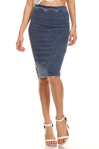 A denim skirt is surely a staple for any girl's closet, especially this high waisted pencil skirt as it features a stretchy fabric for added comfort. Complete this look with a crisp, white blouse and cute heels. DETAILS (Measured from Small): - Waist: 26" - Hip: 30" - Body Length: 24" - Color: Blue 0 |