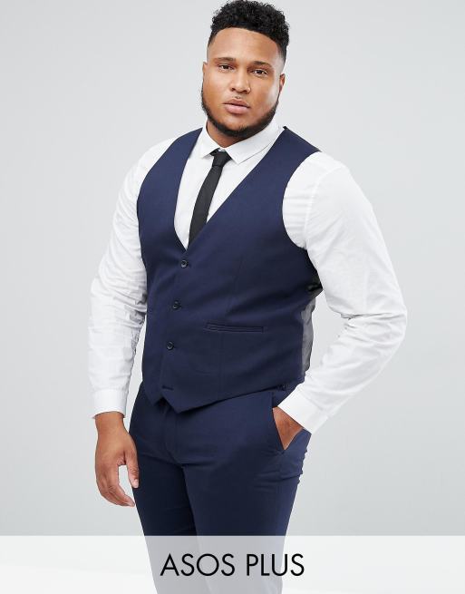 ASOS PLUS Skinny Suit Vest In Navy