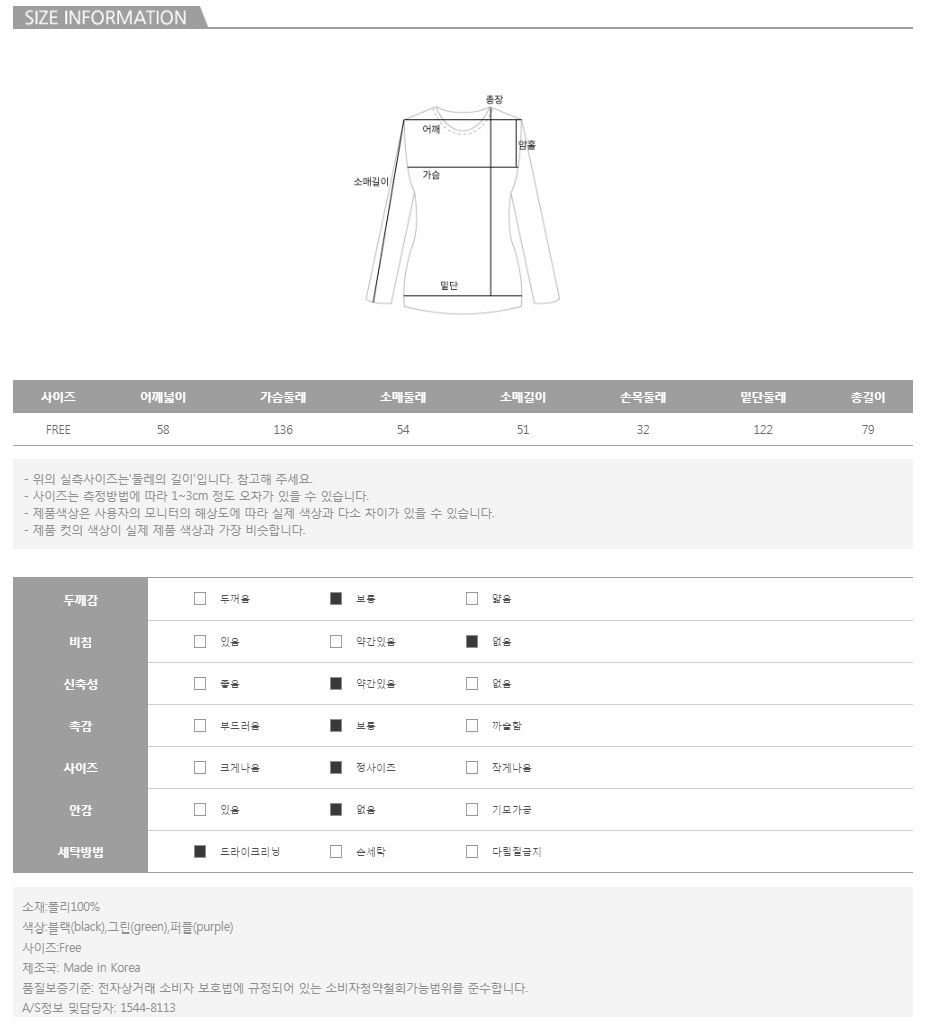 모델의 착용 컬러는 퍼플 입니다.