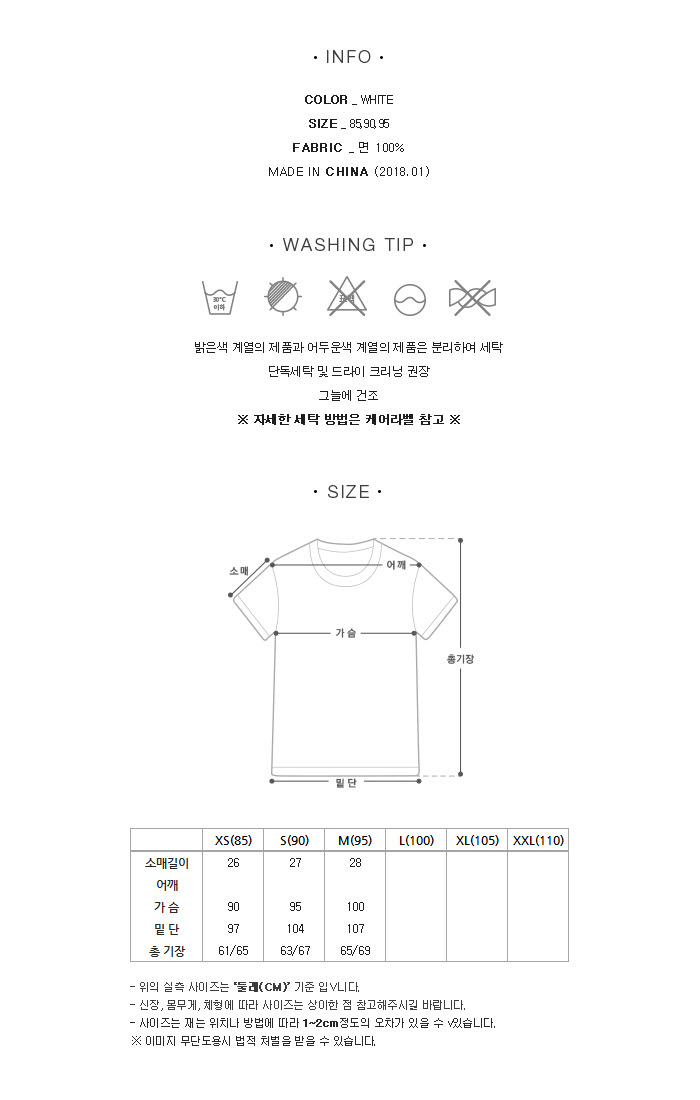| 되도록 드라이 크리닝 하십시오. 손세탁시 뒤집어 단독세탁 하십시오. 착장시 가방류나 밝은 색상의 의류에 이염 될 수 있으니 주의 하십시오. 반드시 단독 손세탁 또는 드라이 하십시오. 세탁시 탈색의 우려가 있으므로 단독 세탁하십시오. 품질 경영 촉진법에 의한 품질 표시를 꼭 참조하시어 세탁하십시오. 합성세제 세탁시 손상 및 탈색의 우려가 있으므로 미지근한 물에 중성세제로 세탁하십시오. 절대 염소계 표백제로 표백할 수 없습니다. 땀에 젖었을 경우 즉시 세탁하십시오. 심하게 비비거나 비틀어 짜지 마십시오. 물에 10분이상 담가두지 마십시오. 취급부주의로 인한 탈색 및 오염 등 제품의 형태 변질 및 수축된 제품은 보상이 불가능 하오니 주의 하십시요. 취급표시대로 세탁하지 않을시에는 보상받으실수 없습니다. |