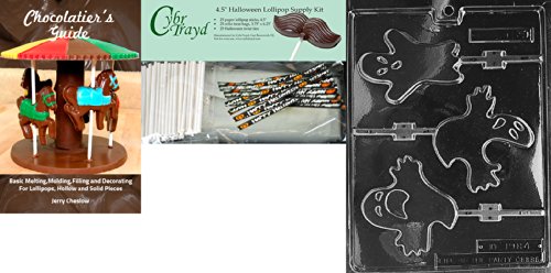 Cybrtrayd "Ghost Lolly 3 Different" Chocolate Mold with Chocolatier's Bundle, Includes 25 Lollipop Sticks and 25 Cello Bags