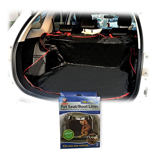 - Feature : Protects your vehicle from pet hair, dander and rubbish, work or beach trips / Made from waterproof polyester to protect your vehicle from messes and spills / Comes with a variety of fastening methods depending on your vehicle / Fits rear seats and cargo areas of SUVs, Vans, Hatchbacks and Station Wagons / 57.5"x 57.5" with extension flap that velcros in place and can fold over bumpers to protect from scratches and paw burns