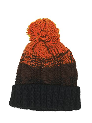 Rampage Womens Pom Knit Navy/Orange Beanie Hat One Size