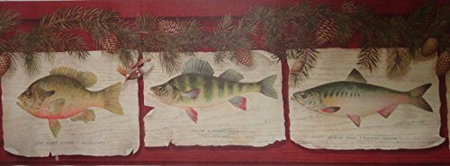 -. Title : Wallpaper Wall Border - Rustic Fish Signs with Pinecone Accents