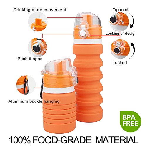 CLTEIN is a registered outdoor creative products brand for 3 years in order to make our life more colorful and wonderful,of which "CL" stands for "Creation for Life".hopefully,thought our efforts,we can bring more to our best customers. Nice size camping water bottle Folding: Folding : 2.7 x 5.9 inches; Open size: 2.7 x 9.9 inches,Weighs 7.4 oz,Capacity:17Oz(500ml),Ideal for your pockets,bags,backpacks,car holders. Safe materials,Worry-free to use Food-grade silicone.FDA approved and BPA free. Top quality and Eco-friendly,Withstands a temperature range of -58°F (-50°C) ~ 392°F (200°C). It works in MICROWAVE AND FRIDGE as well. Anti-scale Easy to clean & dishwasher safe,No rubber taste after hot water, cold drinks,ice cube and beverages. Leak-Proof the lock ring prevents the bottle from accidentally opening and effectively prevents leaks Durable and None-Tippy Never collapse while in use. Package included 1* CLTEINTM Collapsible water bottle. YOUR PURCHASE IS SAFE ! Any issues,You are protected by a 100% "NO QUESTIONS asked lifetime guarantee".if you are ever dissatisfied with our service,free to let us know for a replacement or refund within 24 hours. Note: BPA-Free silicone which is environment friendly, non-toxic, suitable for the customers who have babies (babies always grab everything they can reach into their mouths) Click "ADD TO CART" now and enjoy the benefit today!Feature