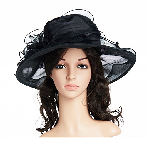 (qnprt)/Accessories/Hats/DIRECT FROM USA/qnprt Women's Kentucky Derby Hat,Summer Fascinator Flowers Wide Brim Organza Church British Tea...