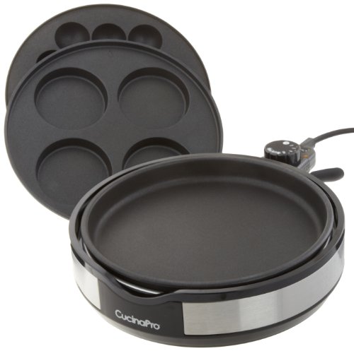 Multi Baker Deluxe by CucinaPro with Three Interchangeable Plates for Grilling, Baking, or Dessert Making: Three machine-washable plates, makes ebelskivers, cake pops and meatballs, great for grilling sandwiches and hamburgers, perfect for cupcake tops and whoopee pies. Easy to use, easy to clean, you will love the versatility of this everyday workhorse.