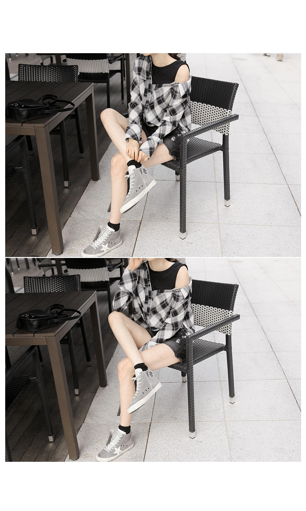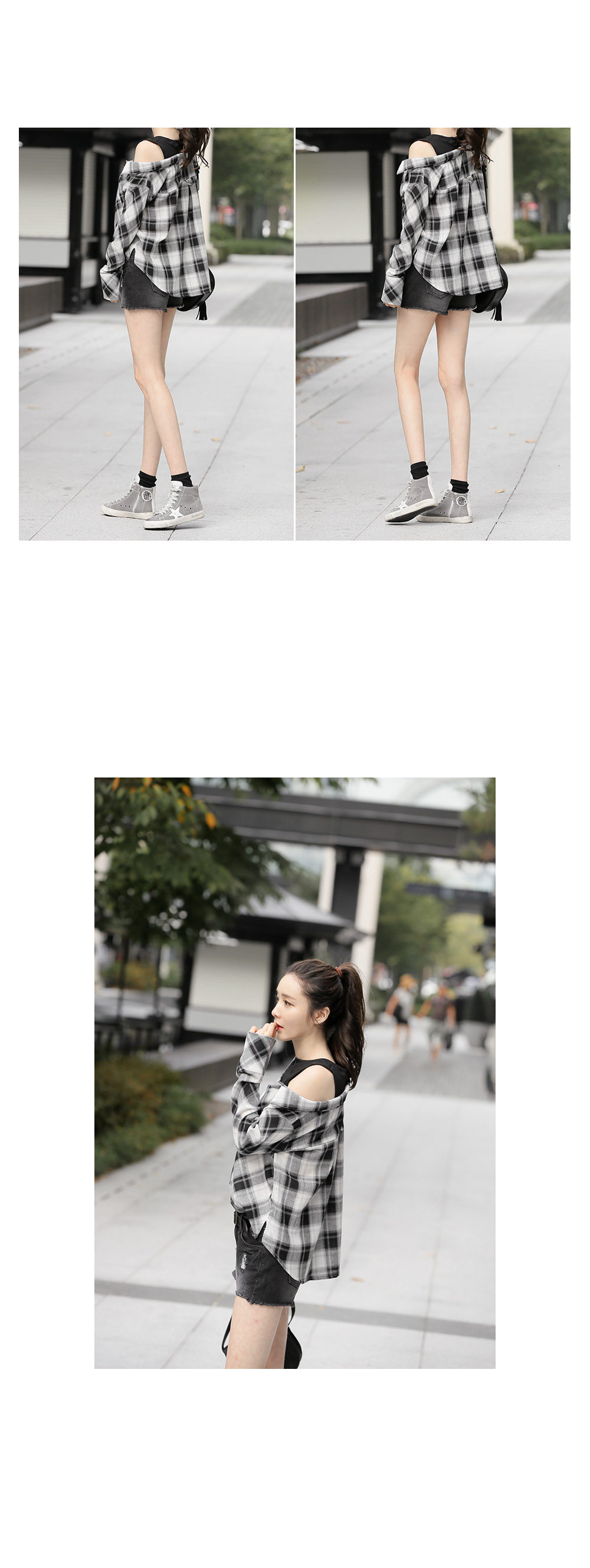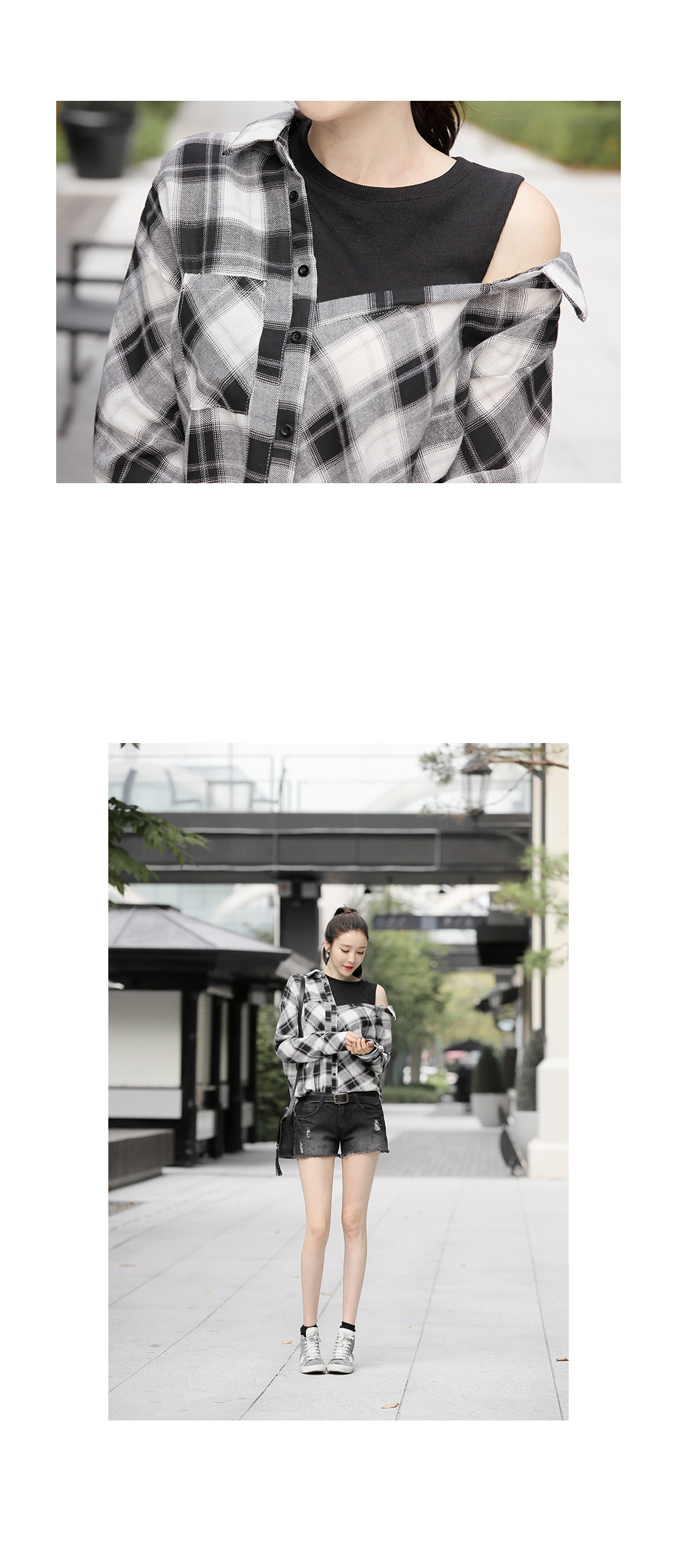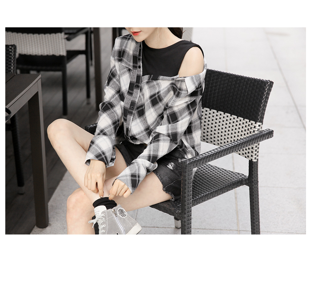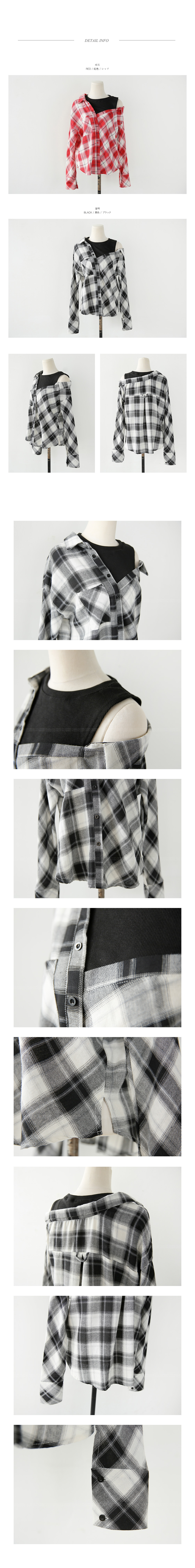 레이어드한듯 유니크한 디자인이코디걱정없이 룩을 완성해 주는 아이템!셔츠와 나시탑을 레이어드해서 입은듯한페이크 디자인이 돋보이는 아이템이구요,포인트 룩으로 연출하기 좋은 체크패턴이캐주얼한 무드를 완성해 준답니다^^언발 오프숄더 디자인이 은근한여성미까지 자랑하는 아이템이구요,루즈한 디자인으로 착용감까지 편안해한층 더 데일리하게 입기좋은 체크셔츠에요!과하지않은 디자인으로 자꾸만 손이가게 될코디 아이템으로 추천한답니다~
