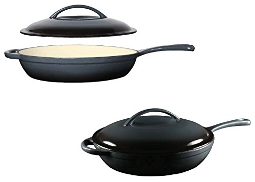 -. Title : Shaffer-Berry Enameled Cast Iron Fry Pan with Lid 11.8 Inch - Charcoal