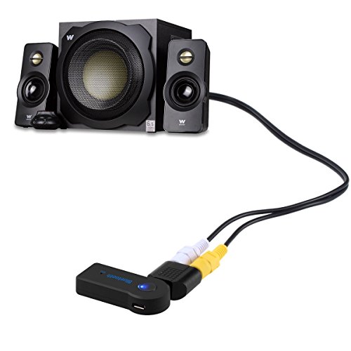 -. Feature : 1. IDEAL FOR HOME OR VEHICLE AUDIO SYSTEMS. This Bluetooth 4.1 Receiver enables wireless transmission of bluetooth equipment's (smartphone or tablet) audio signal to the ordinary car / home audio system / wired headphones, etc; Let you in the ordinary audio equipment, listen to music from a smartphone or tablet wirelessly; Get rid of complex audio cable connections & tangle. / 2. HANDS-FREE CALLS, EASY TO OPERATE. Supports Wireless Hands-free Call, Built-in microphone, Press the "Multifunction" button you can Play / Pause Music / Call and end calls / Redial the last called number (Bluetooth adapter Can Not Control Audio Volume +/-), Power on: Press the "Multifunction" button about 3 seconds, until the blue and red indicator lights start flashing alternately. / 3. WIRELESS RECEPTION DISTANCE UP TO 33 FEET. Supports 3.5mm AUX HD Stereo Audio Port and 2 RCA Audio Port Output, Using Bluetooth 4.1+ EDR with A2DP Get higher quality audio sound for playing music and answering calls. / 4. EXTRA-LONG PLAYTIME AND FAST CHARGED. Provides up to 8 hours play and call time, Built-in battery, only takes 2 hours to get it fully charged. (Car Charger and USB Cable Included) / 5. PACKAGE INCLUDES: Bluetooth 4.1 Receiver / Micro USB Cable / 3.5mm Plug /User's Manual, CAR CHARGER / 2 RCA ADAPTER; If you have any questions or sestions, please contact us; We will solve your problem promptly, until you are satisfied!
