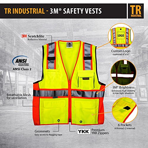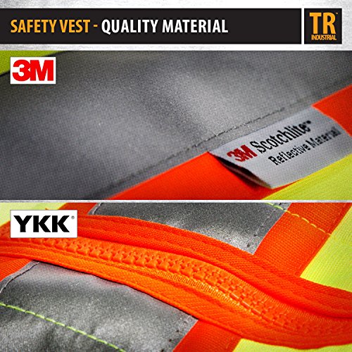 TR Industrial TR55-3M-XXL Class 2 3M Safety Vest with Pockets and Zipper, XX-Large