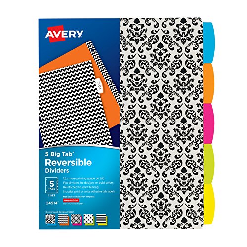 Avery Big Tab Reversible Fashion Dividers, 5 Tabs, 1 Set, Assorted Designs (24914)