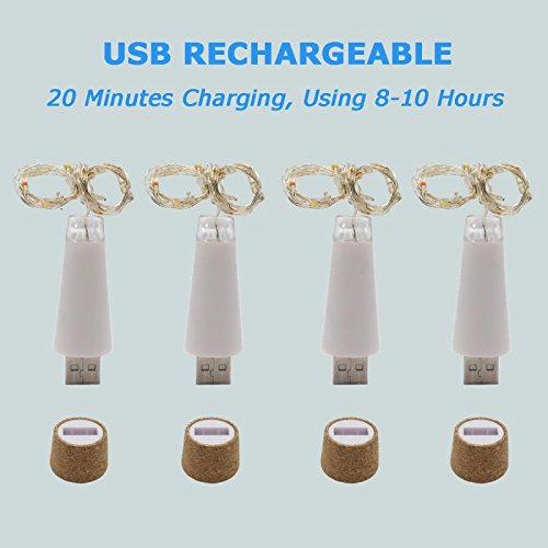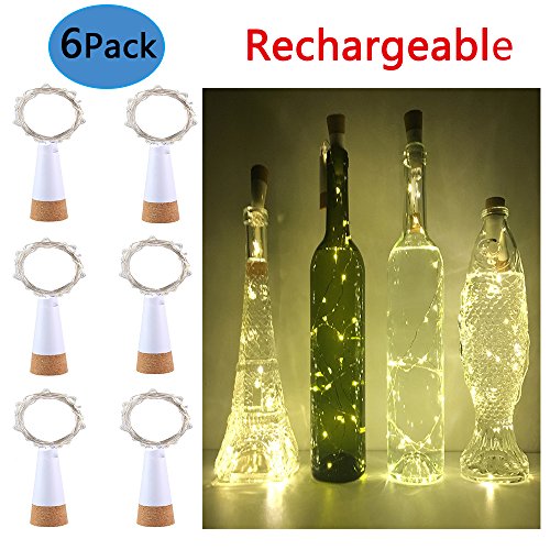 Wine Cork Lights, Anipopy 6 Pack Rechargeable Bottle Fairy String Lights with 15 LED for DIY, Party, Decor, Christmas, Halloween,Gift,Wedding (Warm White)