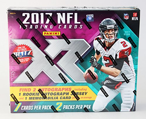 2017 Panini XR Football Hobby Box 2 Pks, 7 Cards: 1 Rookie Autographed Jersey, 1 Rookie Jumbo or Triple Swatch Memorabilia, 1 Autograph, 2 Rookies, 1 Insert, 4 Parallels