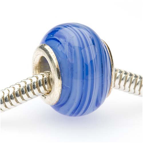 BEADAHOLIQUE MURANO STYLE GLASS LAMPWORK PANDORA COMPATIBLE BEADS, 13.5MM, BLUE MARBLE DREAM