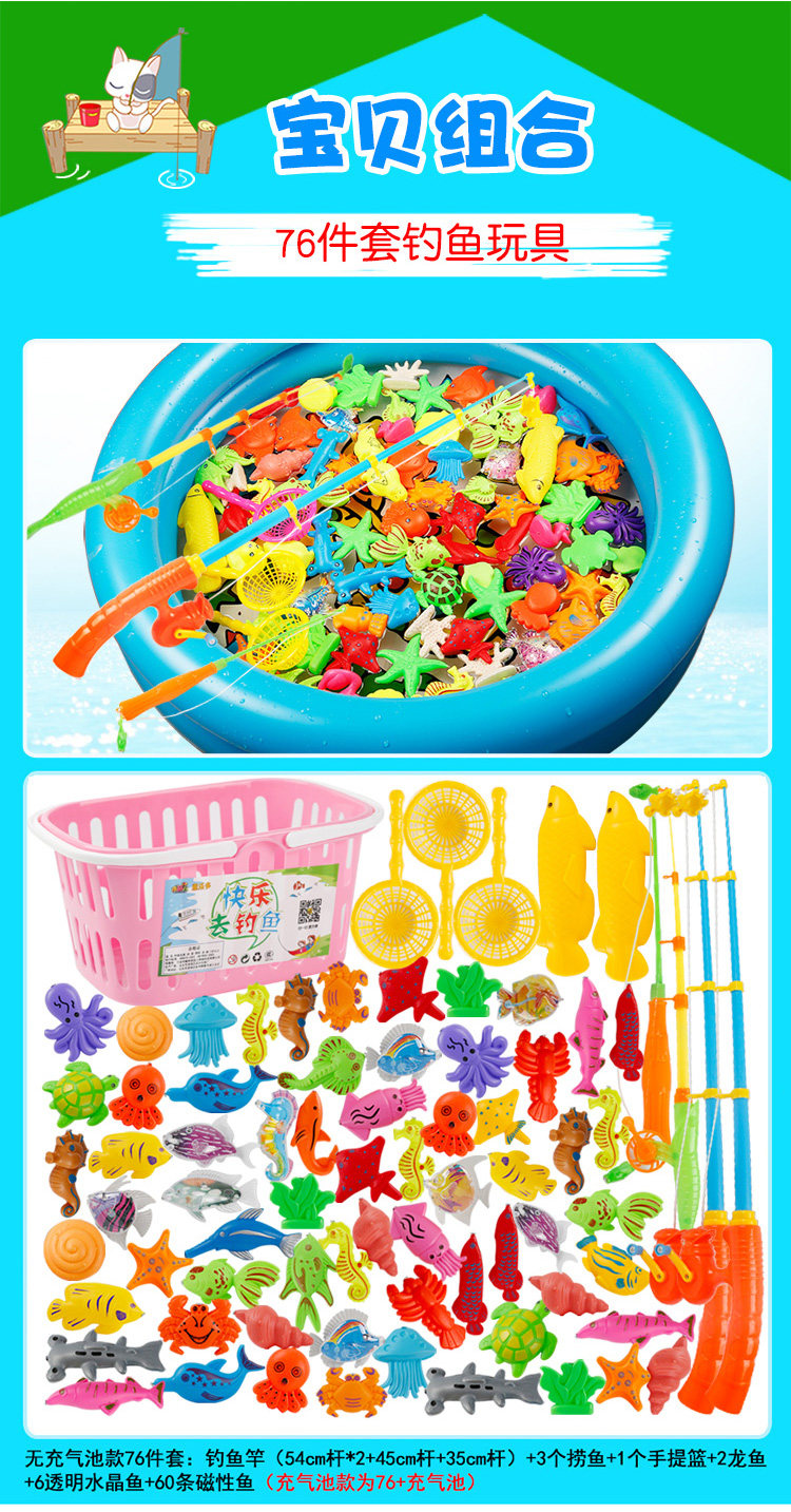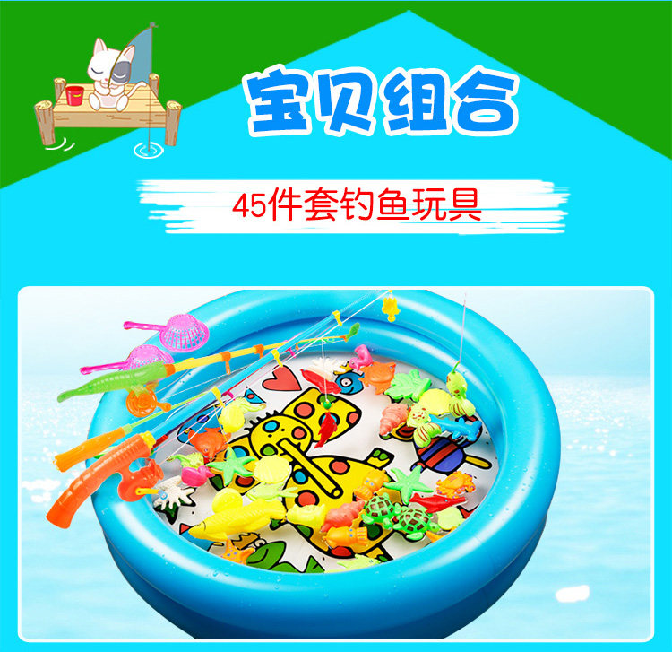儿童钓鱼玩具池套装磁性铁钓鱼戏水男女小孩宝宝玩具益智1-2周岁3