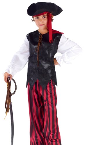 -. Brand : Fun World -. Color : Black -. Department : boys -. Feature : Available in Sizes: Small, Medium and Large / Item Includes: Top, Pants, Bandana and Hat / Pictured items not included: Shoes and Sword / Material: Polyester -. Label : Fun World -. Manufacturer : Fun World -. PackageQuantity : 1 -. ProductGroup : Apparel -. ProductTypeName : APPAREL -. Publisher : Fun World -. Studio : Fun World -. Title : Caribbean Pirate Kids Costume