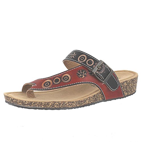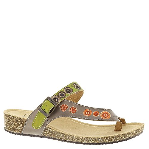 Brighten your day with the Spring Step Lonian sandal. This eye-catching women's thong-style sandal has a hand-painted leather upper for durability and feminine style. A leather lining wicks away moisture and lends a smooth feel, as the padded footbed carries you with cushioning and support. The Spring Step Lonian sandal features a shock-absorbing rubber sole for comfort and reduced fatigue.Feature