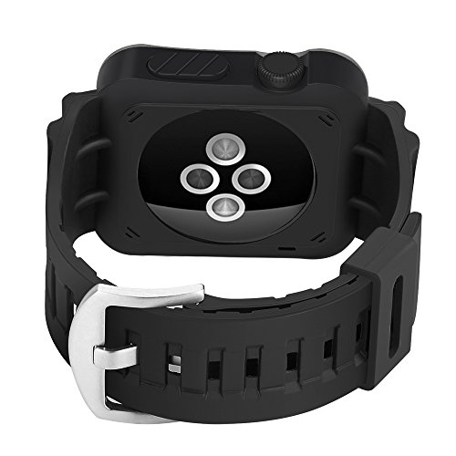 Simpeak Grey Rugged Protective Case with Black Strap Bands for Apple Watch 38mm Series 1 Series 2
