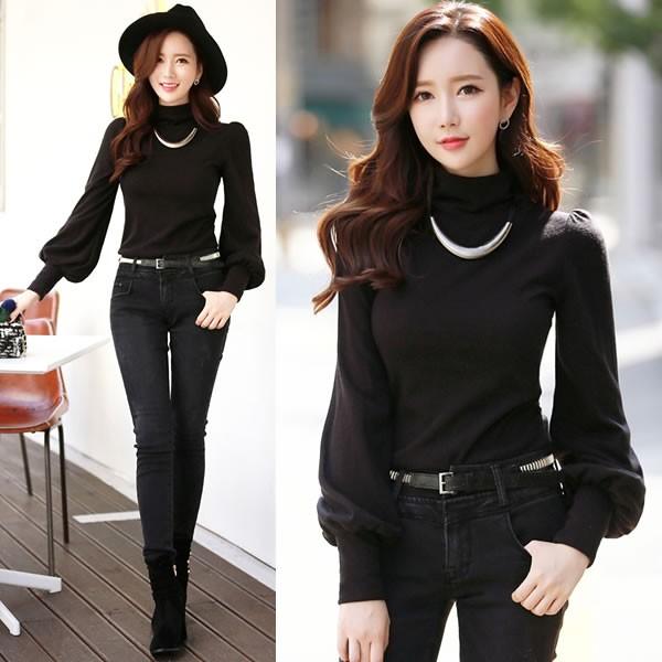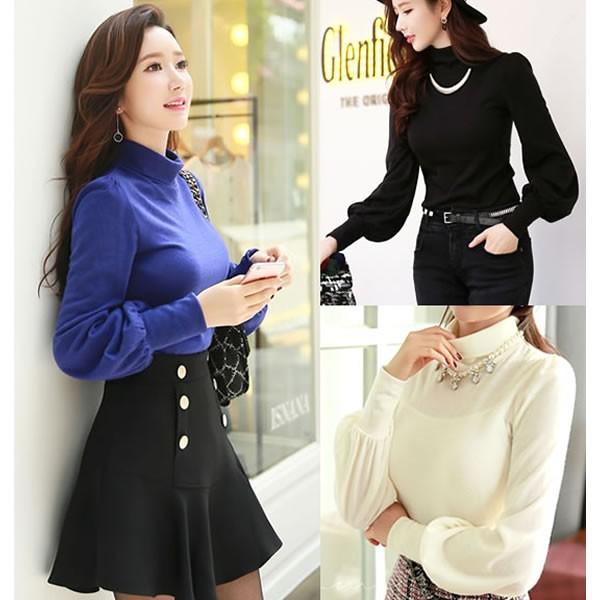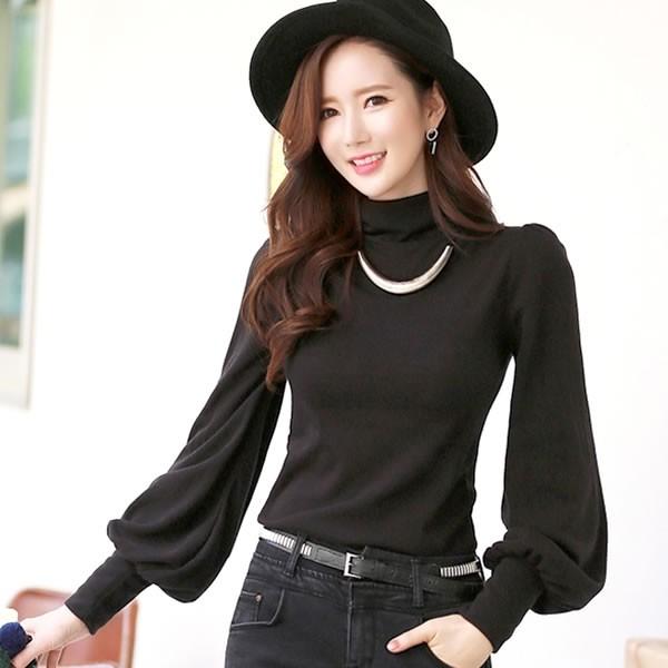 | タートルネック カットソー ふんわりスリーブ 長袖 黒 ブラック トップス 3カラー 【タートルネック カットソー トップス レディース 女性 ボリュームスリーブ ロンデルブラック セクシー 秋冬 シンプル ふんわり袖 白 ホワイト ブルー】 | |