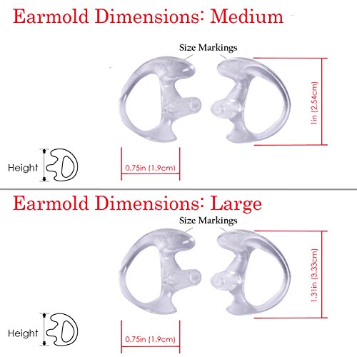 HDE Two Way Radio Ear Mold Replacement Earpiece Insert for Acoustic Coil Tube Earbud (2 Pair, 1- Medium, 1- Large) (Clear)