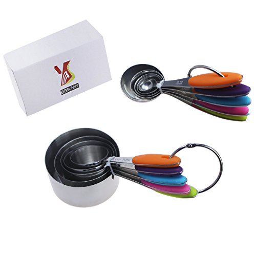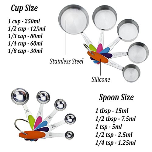 BIGSUNNY 10 Pieces Measuring Cups and Spoons Stainless Steel with Colorful Silicone Handle