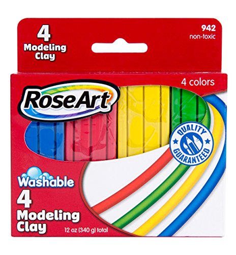 RoseArt Modeling Clay comes in brilliant rainbow colors that let children explore ideas of from and detail while strengthening their motor skills. This assorted color clay ranging from blue, to green, to red and yellow, allows children to create full sculptures straight from their imagination. Modeling Clay gives them inexhaustible possibilities: form pigs, butterflies, worms, dinosaurs, bears and turtles to cars, trains, caves, balls, and fences. Our Modeling Clay is non-toxic and can be washed off skin with little soap and warm water. It never dries up so kids can keep shaping their own masterpieces however long they want, or start over and try something new without worry of running out. There are 4 colors in each package and 6 packs in this bundle. (942AA-24)Feature