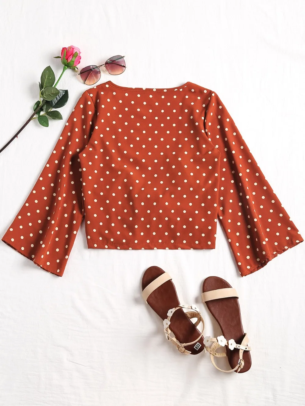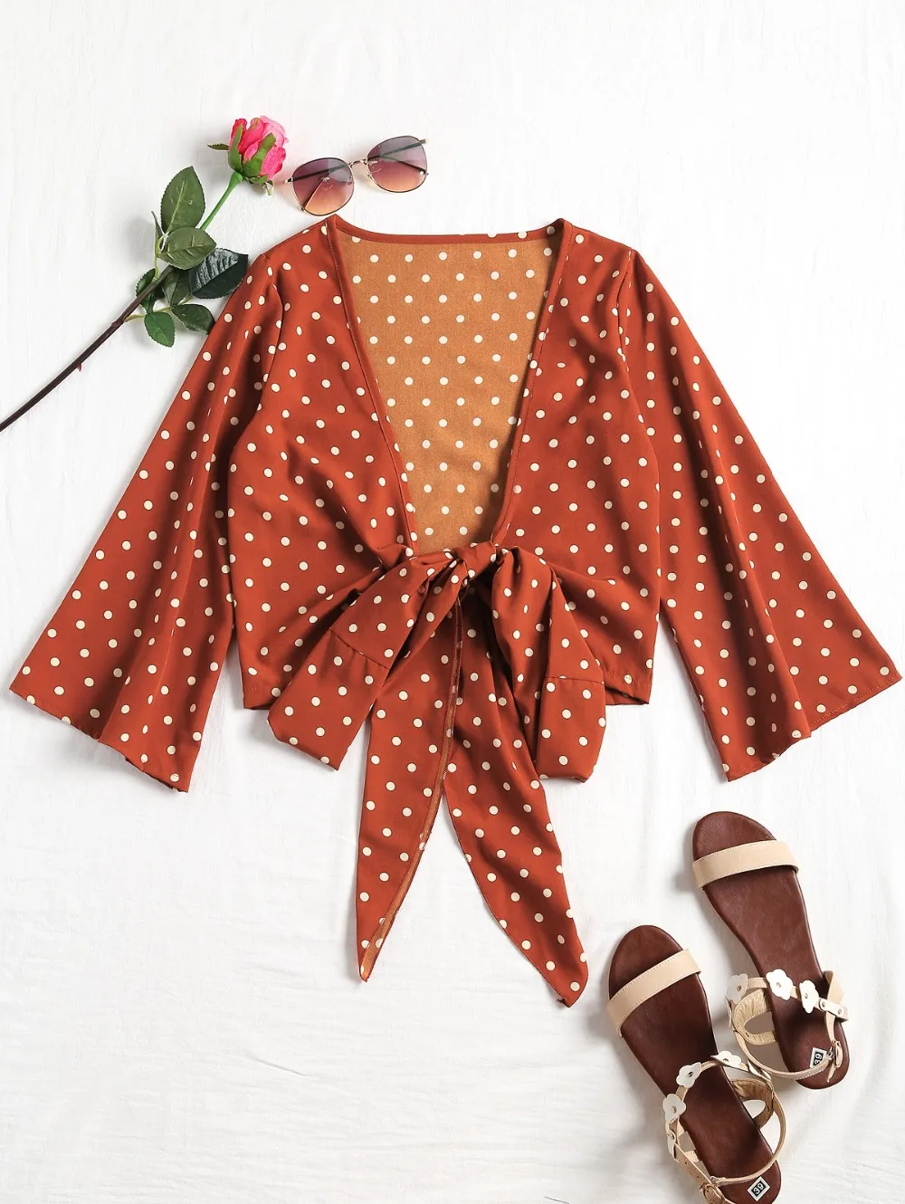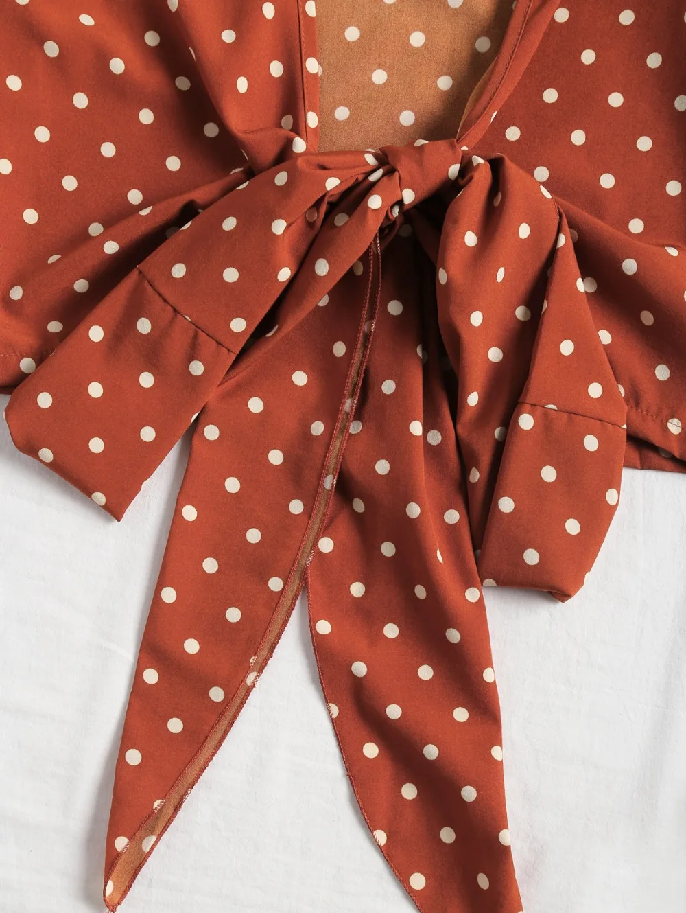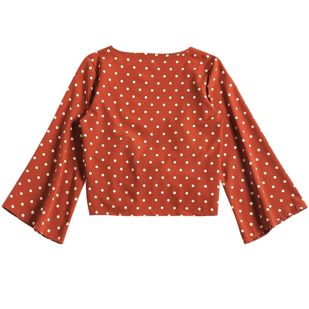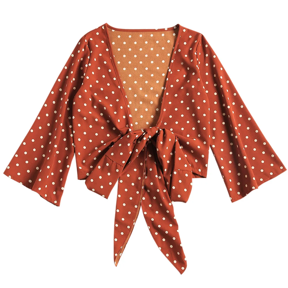 Model Number:Low Cut Polka Dot Tied Blouse
